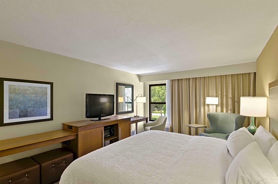 This room features a cable TV, small seating area, and microwave. A small refrigerator is also included.